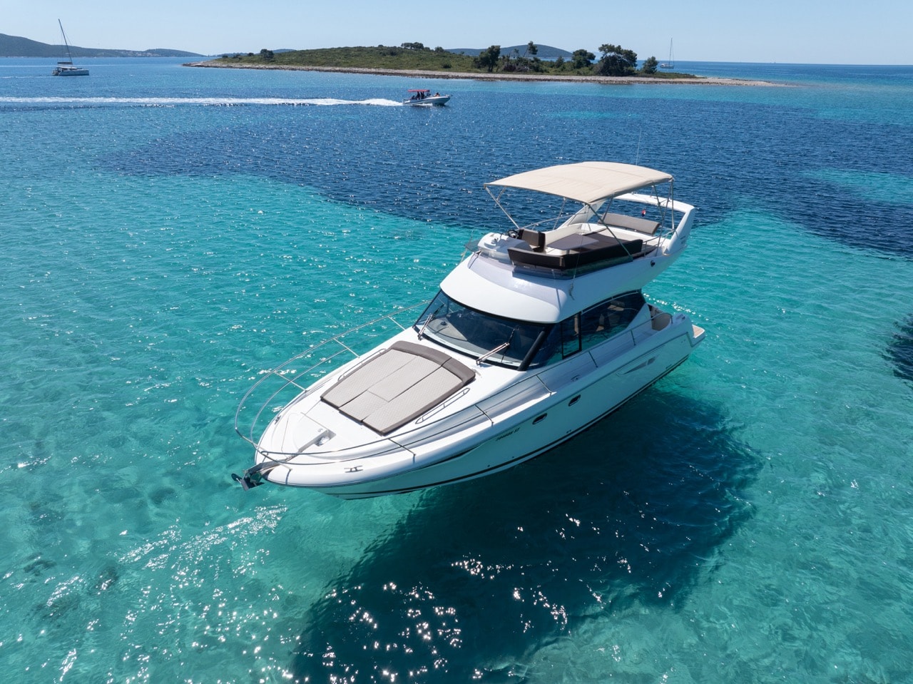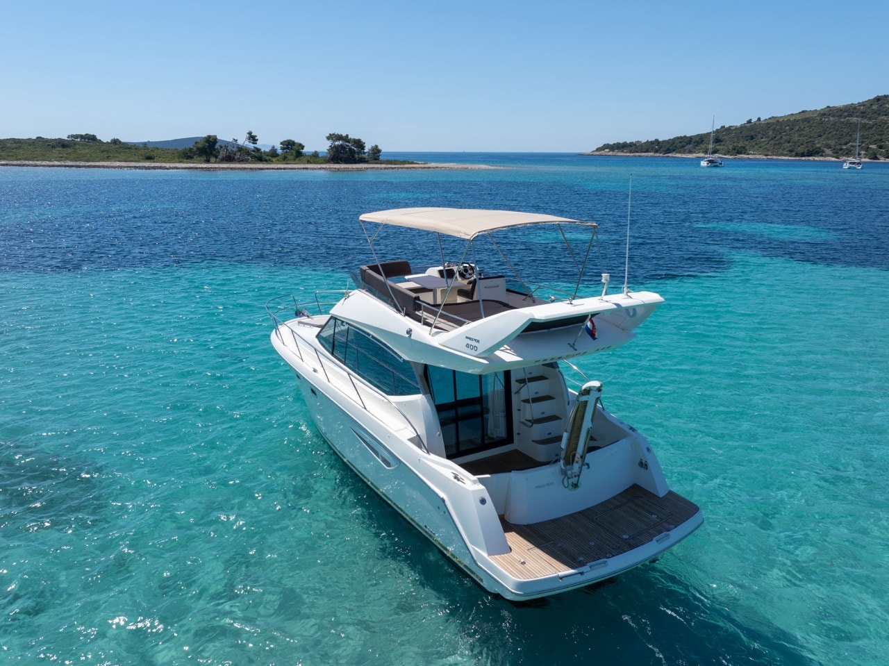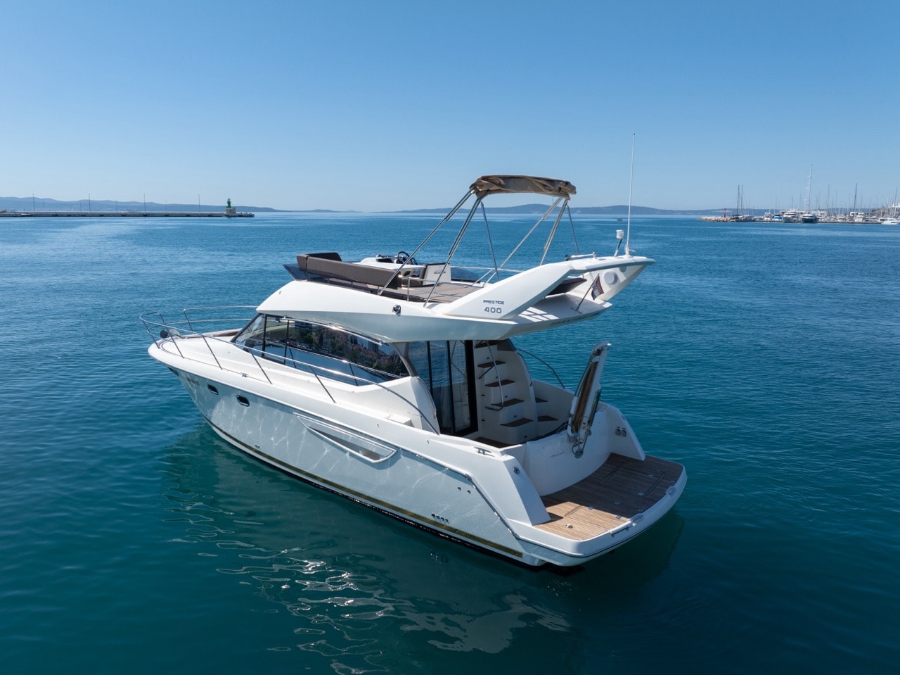 Naš Prestige 400 brod je dug 13m kojeg pokreću dva unutrašnja motora sa 760 ks. Prostrani “flybridge” upotpunjuje moderan dizajn broda te je idealan za otkrivanje dragulja Jadranske obale.